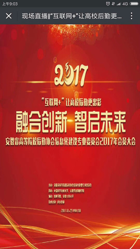 祝賀安徽高校后勤信息化建設(shè)專業(yè)委員會(huì)成立大會(huì)勝利召開!安徽六合電子(遠(yuǎn)控能源)將一如既往的投身于高校信息化建設(shè),源于教育、服務(wù)教育。做好人,做好事業(yè),做好朋友!